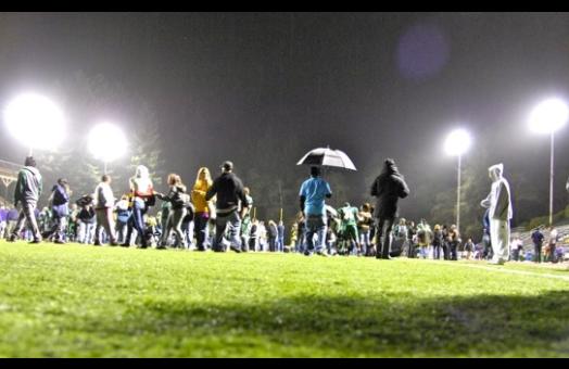 The Relight Redwood Bowl project, funded by a $75,000 grant from Humboldt Energy Independence Fund and carried out by the Green Campus Program, is now completed and operational. The project reduces the number of light poles on the track and football field from eight to four, and reduces the number of light bulbs used from 96 to 60.